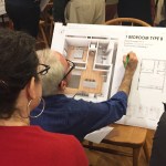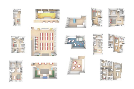 Before French 2D started designing, the firm hosted workshops for the group to drill down on the wants and needs of the collective. “On any given day, there’d be 30, 40, 50 people in a room [with] all of their different perspectives, all playing different roles—the mediator, the question-taker—keeping each other in check,” Jenny says. Clients identified the features they knew they wanted, such as proximity to a train station, while using game-like exercises including rearranging images of home features—large and small closets, double vanity sinks, built-in shelving—to decide what was necessary in each unit. The group also laid out a charter to organize the residents’ core beliefs about co-living, as well as formalize their expected participation in self-governance and events such as movie clubs and game nights.