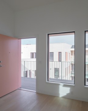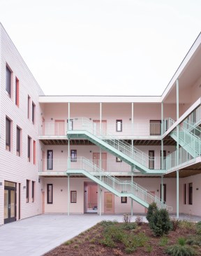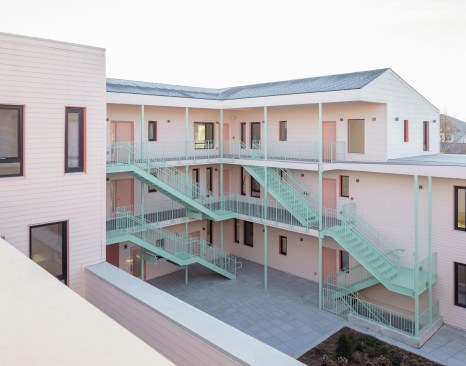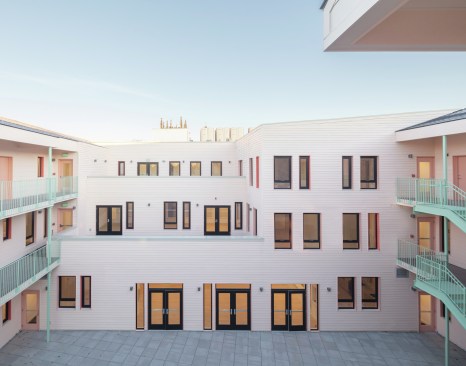 The architects have facilitated this arrangement with a plan that subtly modulates between the private and public spheres: stairways and exterior corridors connect apartments to one another and a central green space below, where a community garden doubles as a front yard for the lower-most apartments. The net result is a building as radical as the “social condensers” favored by 20th-century Russian Modernists, but adapted to the social realities and pressing needs of the American metropolis in the 21st century. —Ian Volner