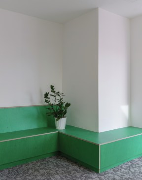 Custom millwork seating in Koskisen, Koskidecor Eco Transparent Decorative Plywood