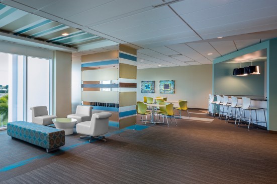 The striking architecture embodies BayCare’s smart, progressive and reliable personality. It sets the company apart with a memorable aesthetic and employee-friendly features while also conveying fiscal restraint and responsibility. Gresham Smith's design solutions reflect the evolution of BayCare’s brand toward a vibrant community-health-focused institution rooted in its core values: respect, dignity and integrity.