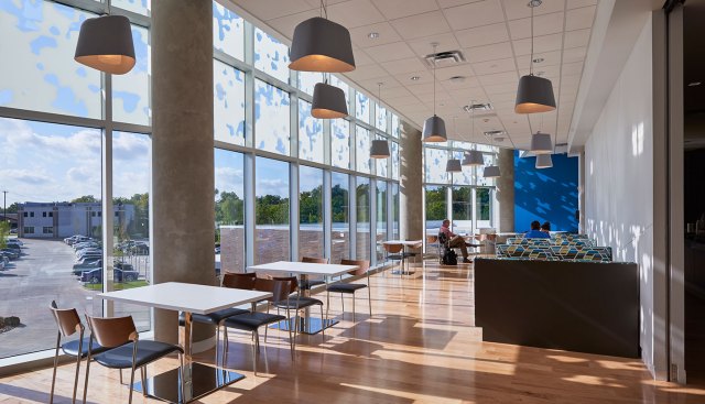 The second level accommodates additional respite areas and nourishment for families and visitors with a café that overlooks the lobby garden and adjacent Park Place neighborhood. It also houses business support services, 26 inpatient beds and four intensive care beds. The new facility offers private patient beds, unavailable at the former location, which aligns the hospital with its desired goal to enhance its patient-family centered care services.