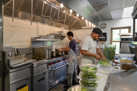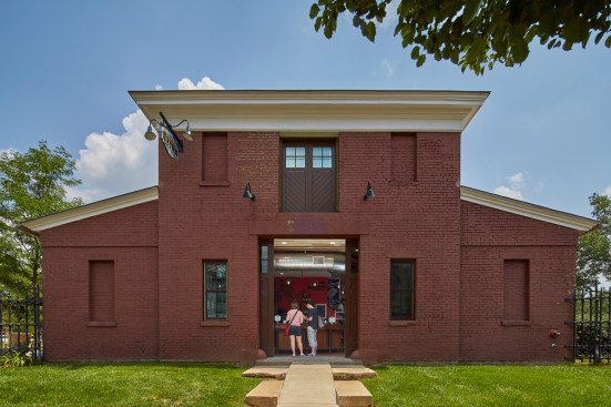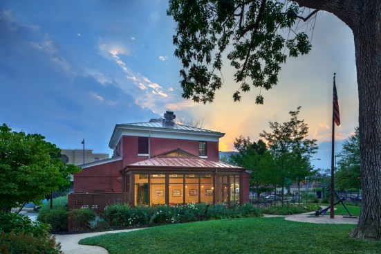 The Bayou Bakery is an adaptive reuse of the ca. 1860s carriage house at the Old Naval Hospital, located at the corner of 9th Street and Pennsylvania Avenue, SE within the Capitol Hill Historic District. This rehabilitation project was subject to approval by the SHPO, National Park Service under Save Americas Treasures and Historic Rehabilitation Tax Credit programs. The project retained a high degree of historic fabric and revealed character defining features, such as a massive granite lintel, salvaged wood ceilings, hidden original herringbone-patterned brickwork and scored concrete flooring. The new uses have public spaces on the first floor (serving areas, dining, conservatory and outdoor garden) and full commercial kitchen and production bakery upstairs. Visible in the main serving area are sliding wood doors, wire-caged lift and a new wood stair. A new window was installed at a blocked original window location when the narrow, hazardous earlier stair was replaced. An eclectic palette of colors, furnishings, lighting and found objects helps to enhance the historic property while expressing the vision of the celebrity chef and his New Orleans concept café.