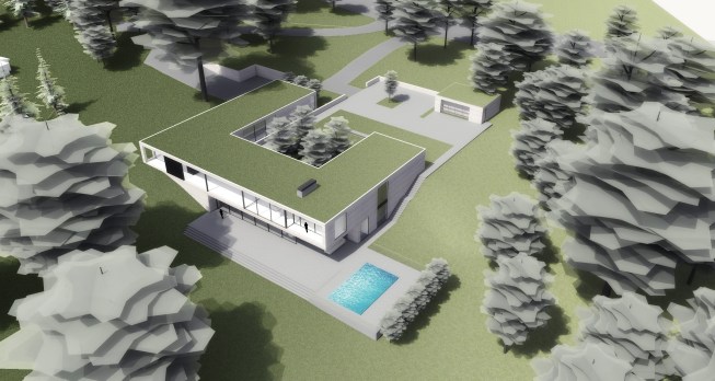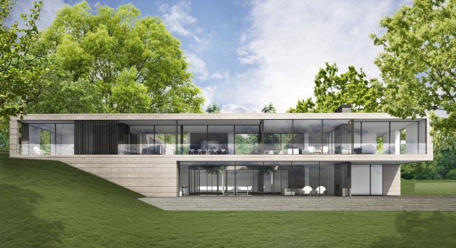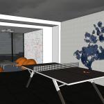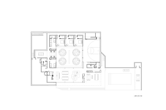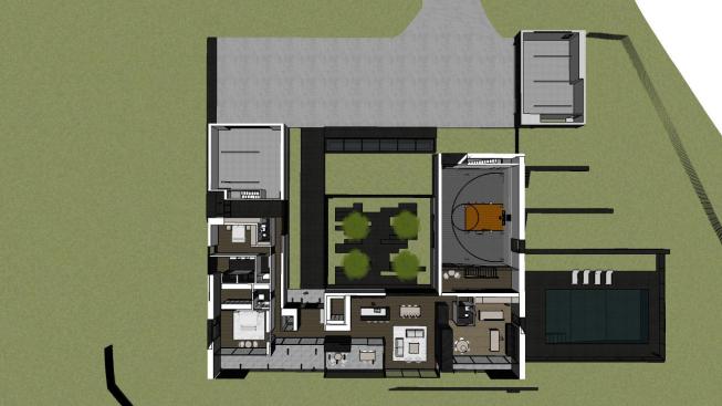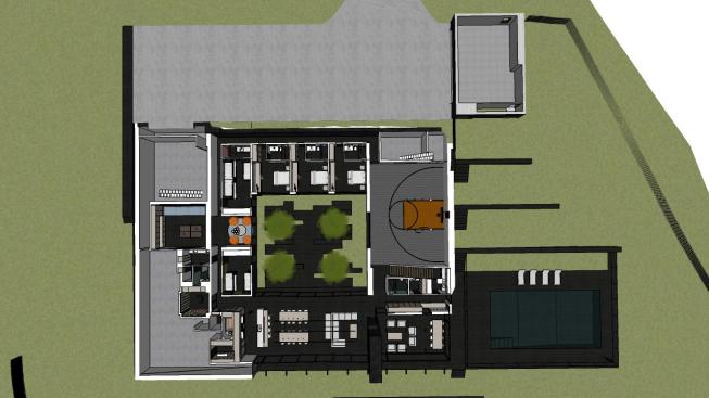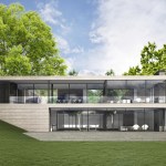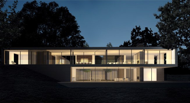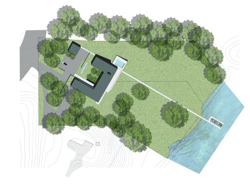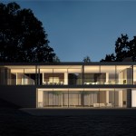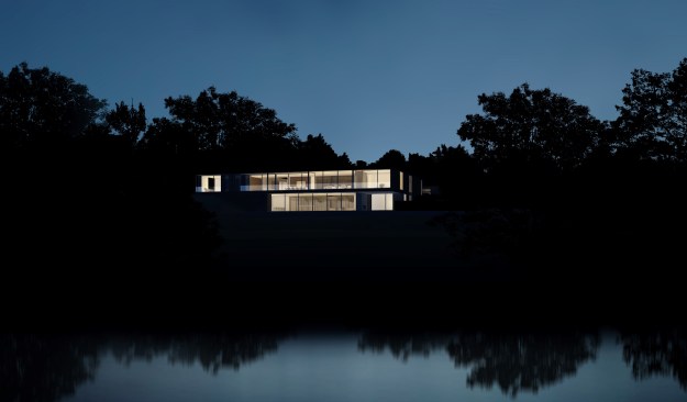 The client, an engineer, and his wife are avid sailors and empty-nesters who raised their children in a traditional home. When a pair of prized lots overlooking a lake became available, the couple jumped at the chance to build a new modern home for the next chapter of their lives. They also wanted the house to serve as a gathering place for their grown children and grandchildren, who visit often. Guided by the undulating land with mature trees and expansive lake views, the architecture firm designed a two-story house and nestled it deep into the site so it appears to be a single-story home from the road. Finished with timeless stone on the first floor and stucco on the second floor, the house features floor-to-ceiling windows on all sides. As the clients have a love of modern design and a clear vision of their new home, the architects’ only challenge was accommodating the extensive programming while staying within the desired square footage. Balancing sophistication and playfulness, the architects designed separate living spaces for the couple and their children and grandchildren. In addition to a master suite, three bedrooms, a guest bedroom, and two bunk rooms, the designers included a ping-pong room, a sport court, a swimming pool, a boathouse, an attached two-car garage with charging stations for electric cars, and a detached three-car garage. As a reflection of the owner’s engineering expertise, the house includes LED lighting in every room, customization colored “mood” lights in the grandchildren’s secret play space, automated louvers on the windows to control light and privacy, a drop down glass railing between the house and the pool, and other next-generation features.