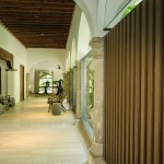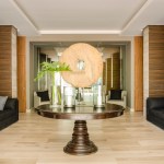 The quarry details and stone walls that were preserved, along with some wooden gestures and comfortable furniture in the halls and public areas stand out. The combination of contemporary façades with apparent concrete cladding of the towers, and the stately architecture of the amenities house, enhance the warm balance and timeless style to the whole project.
