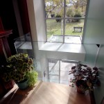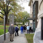 A new elevator, accessible bathrooms, new accessible stairway, and future ground-level children’s library sit just inside the entrance. Alterations throughout the library improve accessibility. Bookshelves are removed and reconfigured in the main stacks, the circulation desk is expanded, and all reading rooms, meeting rooms, and the upper level gathering hall are easily reached for library and community activities.