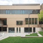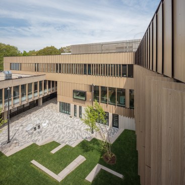 Tehrani: The courtyard was a collaboration with landscape architect Gary Hilderbrand, and there was an intended dialogue between a bosque of birch trees that he had conceived of in the courtyard and the façades. We went through many different iterations of timber cladding elements—they became thinner, and thinner, and then they became louvers. You’re seeing one iteration out of several that we drew in order to accentuate the kind of dynamism of the circulation as you walk around this building in different directions, but also the way the birch trees wave in the wind.