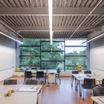 Tehrani: Schools are like public spaces. They’re designed to get beaten up and battered, and our general philosophy toward concrete, fabrics, and plywood is that they’re going to get a lot of wear and tear. The plywood is well-crafted, but it’s a raw detail, and it doesn’t matter if it gets beaten up a little bit because it adds to its patina. Overall, this project also became an exercise about articulating and framing a didactic space of teaching and learning with certain details that trigger in the students’ minds that something in architecture is happening here. It’s not business as usual.
