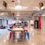 Faulkner: The interior is very bare because, certainly for the first-floor fabrication level, the idea is that it’s a workshop. We used Baltic birch plywood upstairs, and we spent a lot of time with [acoustical engineer] Acentech aurally modeling the space, figuring out what could be hard and reverberative, what needed to be soft and absorptive. Our palate always tends toward the natural because you can do a lot with that.