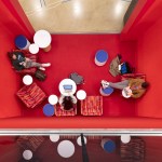Katherine Faulkner, AIA, principal-in-charge: The campus has been added to maybe four times since the 1920s. The structure that we were focusing on was a 1960s concrete-frame library, which really sticks out as a modern Brutalist building in a field of iterative Georgian additions. The school had done a master plan, called “the ring of knowledge,” that was all about bringing their campus up to accessible standards, and that was very much the genesis of this project: How do we line up and connect all of the buildings so that one person can get to every corner of the campus without going outside? The school has also really made a name for itself among middle and high schools that have embraced technology. This addition was going to be a library, but one rebranded into a research and design center. It’s got a strong fabrication component, and its notion of how a library is used is really quite different from any library addition we’ve ever done.