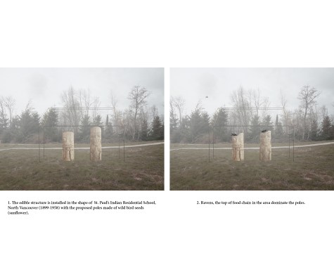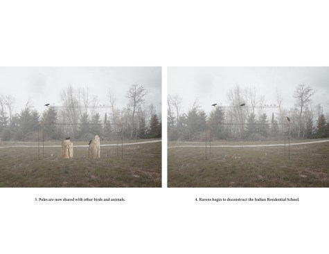 Becoming Raven is an alternative vision to the existing Museum of Anthropology, Vancouver, which is primarily based on the preservation model. In so doing, ravens become an agent to deconstruct the idea of preservation and re-introduce a Native model, becoming part of the natural cycle.