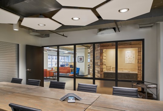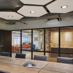 Beekeeper Group, located in the bustling Metro Center area of Washington, D.C., is a communications, advocacy, and stakeholder strategy firm that uses a hive-centric model to help organizations recruit and engage audiences. Wingate Hughes embraces Beekeeper’s brand in the 5,309 SF office design — the company’s logo is a bee and corporate language is chock full with “buzz” words — and uses shapes, materials and finishes to evoke their hive mentality.