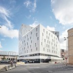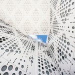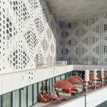 With its great folds, the project does not have main front and back facades, but instead is a continuous loop of successive programmes, all enveloped in the same bright and homogenous material.