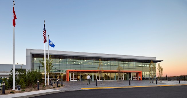 As the global market leader in the development, production, and marketing of actuator solutions for controlling heating, ventilation, and air-conditioning systems, Belimo strives to differentiate itself from competitors through higher customer benefits of its products and services with a focus on customers’ success. Belimo works collaboratively as a team to achieve its goals and the recent growth of the company drove the need for a larger facility that is able to speak to the company’s mission and values. Belimo’s new North American Headquarters, perched dramatically on a 34-acre site in Danbury, CT, was beneficial to teamwork, communication, and a realignment of the company’s vison and goals. The 195,000 SF building program comprises 129,000 SF of logistics and manufacturing space, 15,000 SF of test labs, and 51,000 SF of office space.