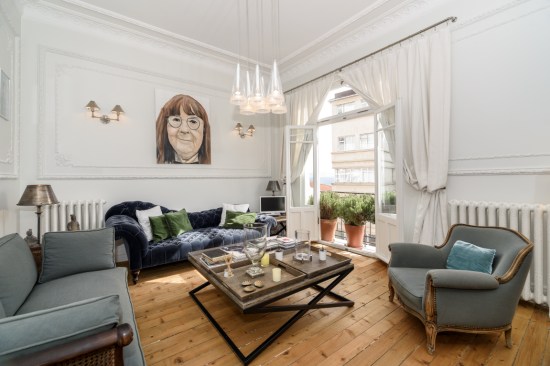 The flat is on the fourth floor of Hamit Bey Apartment building which was designed by the architect Apostol Mavrodoglu a century ago and it is located on Gumussuyu Street in Taksim, Istanbul.