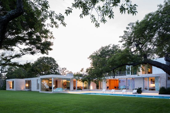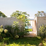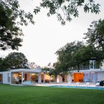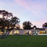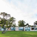 The house faces South and overlooks the water. As people pass by in boats, or birds fly by and the tide changes, the activity of the waterway is on full display from the house. Conversely as you walk to the water front and look back at the house, you see the full activity inside and around the house in full display. When on the water with a boat, the house acts as a landmark as it punctuates the tree line with a low slung orthogonal volume of brick and glass. When evening comes, the reflections on the glass give way to transparency into the house that acts like a lantern. A dialog between waterfront and house seems to be constant motion.