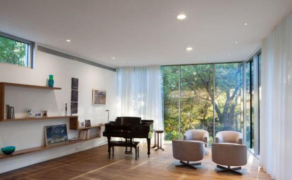 The tragic loss of a recently renovated historic home in this dense Belmont neighborhood necessitated rebuilding the house. The owners saw an opportunity to depart from the traditional architecture to a more contemporary expression that would be informed by and more open to the site, yet respect the scale of the neighborhood.