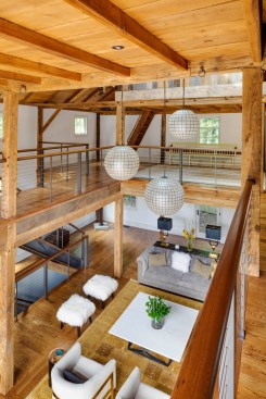 Located on the site of the Historic Locke Dairy farm in Belmont Massachusetts. The design preserves the barn’s scale and character while meeting current structural, code and energy standards. The final design incorporates a mixture of rustic elements, such as belt-driven fans and reclaimed barn paneling, while introducing modern lighting, steel stairs, and railings.