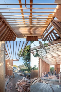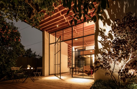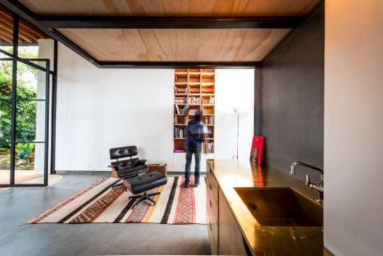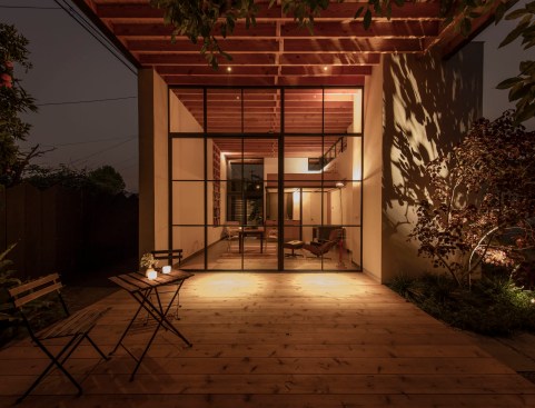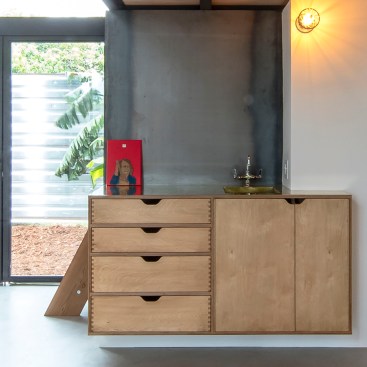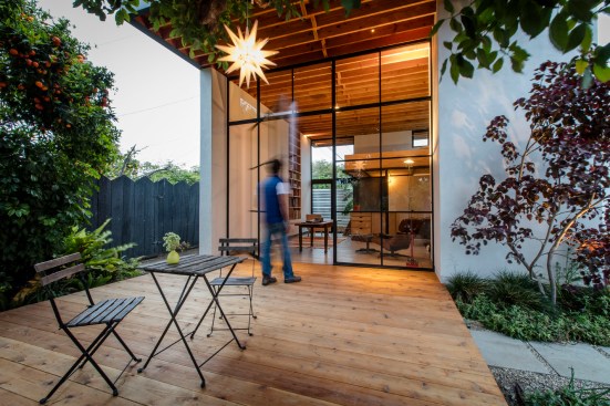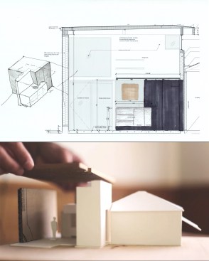 This project responded to the needs of a work-from-home designer whose growing business was straining the seams of his 1940’s bungalow but who was reluctant to trade the relaxed vibe and convenience of his midtown neighborhood for a commercial office. We took advantage of both unused space at the back of his extra-long lot and zero-growth zoning that supports in-fill to design an on-site studio loft that is creatively inspiring, socially and environmentally sensitive, and highly configurable. Inspired by the minimalist Japanese lunchboxes that only reveal their nature when opened, we used a simple geometry to maximize both volume and utility. The space is connected visually and physically to the outdoor deck and yard via a large glass pivot door, and can be easily re-arranged for working, reading, sleeping, and entertaining. It is also connected, in the spirit of wabi sabi, to the local tradespeople who forged steel-framed windows, built wooden cabinetry (with sake box joinery), poured concrete floors, and applied paint-free plaster finishes by hand, balancing precision with a touched-by-man feel. To minimize impact on neighbors, we placed the studio well back on the lot and behind the existing garage (with which it shares a wall), making it nearly invisible from the street, and kept mature trees intact to minimize visibility from adjacent yards. To lessen environmental impact, we leveraged existing utilities, installed radiant-floor heating, super-insulated walls, used laminated glass, and designed windows and roof overhangs for passive cooling and control of solar exposure, respectively. Project images document the nearly 3-year long process from initial hand sketches of the site plan and sections to physical models and finally framing, construction and completion.