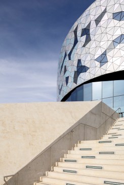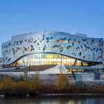 – The building’s curvilinear form appears to hover over a highly tessellated landscape as a floating cloud of knowledge.