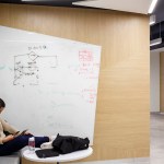 Throughout the building, a student-centric philosophy extends – even the corridors are places to learn and create with small niches, banquettes and white boards for around the clock brainstorming sessions and critique.