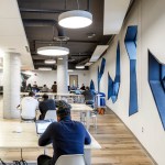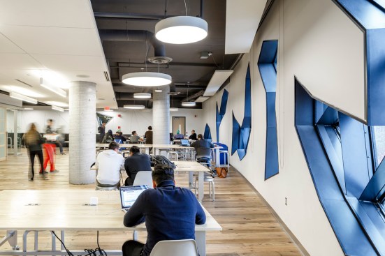 – The Design Commons, with its flexible large and small group work areas, appears more like a design studio than a student lounge.