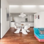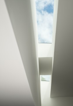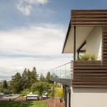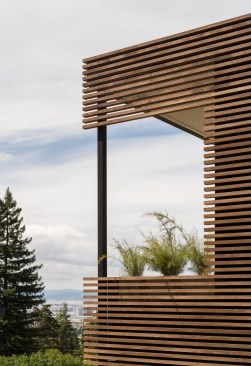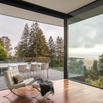 The renovation of a 1960s Berkeley home focused on a modern European style, prioritizing expansive views and spacious interiors within the original structure’s footprint. The design highlights include elevated living areas with 14ft ceilings and a full-height sliding door to merge indoor and outdoor spaces, centering on views of San Francisco and the Golden Gate Bridge. A deck extends towards these views for optimal outdoor enjoyment. The minimalist, white interior draws attention to the scenery, with a converted lower level into a master suite. The redesigned exterior features a landscaped yard with a lawn, fountain, and hot tub, all oriented towards the picturesque vista.