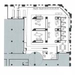 Throughout the interiors of Bernhardt’s design showroom, the design team chose materials that would reflect and emphasize the Bernhardt image. Known for their combinations of light-colored woods, glass, and stainless steel, Bernhardt has become one of the most significant manufacturers of contract wood furniture. The design team’s understanding of Bernhardt’s tradition of creating simple, elegant furnishings clearly informed the design of this showroom.