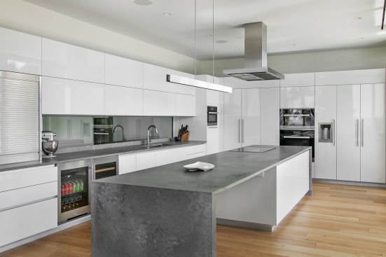Unlike many stark white boxes spotted along Florida’s Gulf Coast, Betonhaus uses raw concrete, wood accents and subtle color to warm the overall aesthetic and add additional layers of detail to the design. “Warm modern” is a new modern typology that invites inhabitants to actually live in the space rather than feel alienated. It is warm, family-friendly and easy to live in. The conditioned 5,500 square feet is elevated on the second floor via elevator and feature atrium staircase climbing a polished architectural concrete wall.