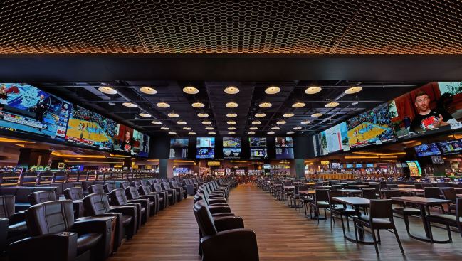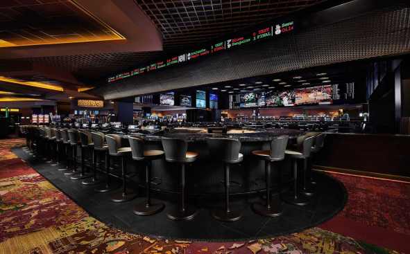 The team paid attention to the custom, side-by-side club seating, which through design testing, has become a patron preference for sportsbook lounges. The sportsbook also includes 33 self-service betting kiosks and six betting windows. The 48-foot bar is strategically located to service the sportsbook lounge and gaming floor.