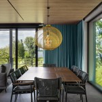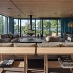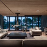The materials play with shades, the surfaces ask to be touched to enjoy the textures. Everything is natural and tactile-emotional. The color balance of the living room balances the unrestrained bright play of nature outside the windows.