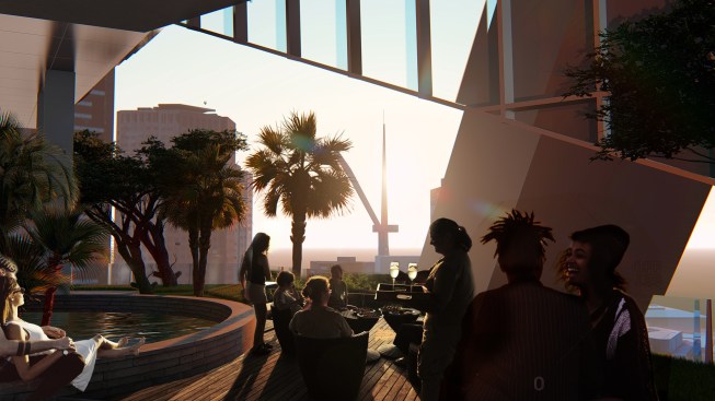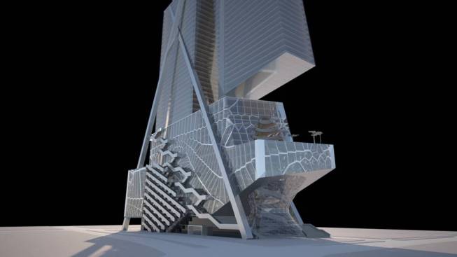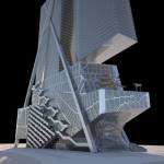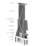 Our vision for BEULAH PROPELLER CITY is the creation of a vertical city composed of multiple functions intertwined in a fluid gesture of vertically linked public spaces. The “Gestalt” of the structural, material and functional components of the design will create a memorable and unmistakable icon in the city-scape.