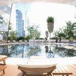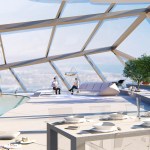Like a sky-high conservatory, the hotel terrace provides a wonderful winter-garden escape. A body of water reflects the sky into the terrace, and is surrounded by fern-like glade of planting.