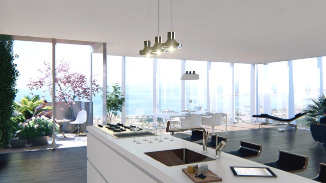 The propeller penthouse enjoys a private secluded landscape complete with pool and lush planting. The residential terrace is sheltered from the wind and transformed into a lush usable terrace, complete with space to meet, relax, dine, socialist and exercise.