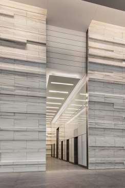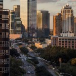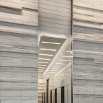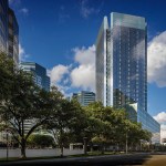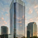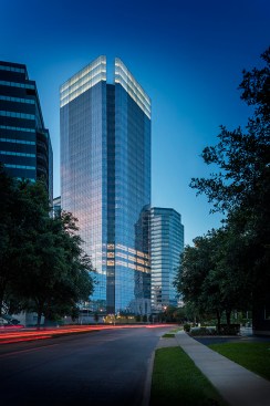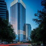 Seven levels of parking serve the building’s Class-A office space. The efficient floor plates conserve resources and lend themselves to convenient planning and office space management by tenants. The tower design includes numerous sustainable features, and has achieved LEED-CS Gold certification. For example, a glass curtain wall clads the tower, articulated by a delicate screen of sunshades that reduce heat gain from the Texas sun, while bringing a more intimate scale to the building.
