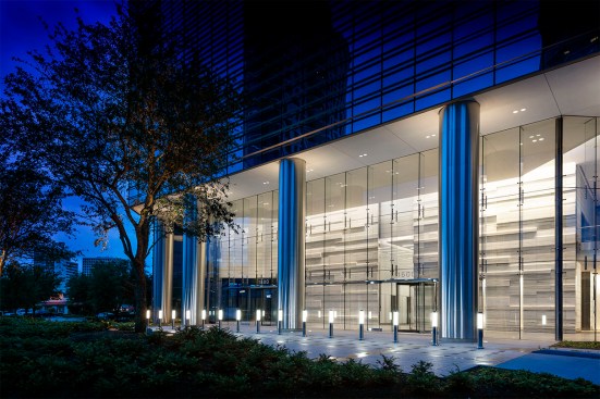 Complementing and completing the adjacent Four Oaks Place, owned by TIAA-CREF and designed by Cesar Pelli & Associates, 1500 Post Oak Boulevard creates a new focal point for the development and defines a fresh southern edge along the complex’s central garden. The office tower also serves as the main entry for the development and welcomes visitors with a spacious, naturally lit lobby. At night, the prismatic crown atop the building reveals the building’s presence in the Houston skyline.