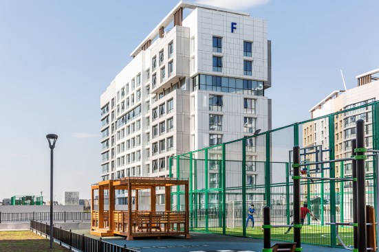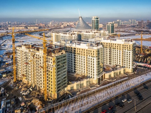 The architectural appearance of a comfortable residential complex in Astana has been executed in the style of a modern interpretation of constructivism. The facades are extremely simple, with a row of windows included as a horizontal division of structures. With the minimalism of the compositional design, aristocratic restraint and monumental respectability were pursued in the architecture’s overall figurative expression. The residential complex features all modern smart-house technologies. This project received the International Award in Asia Pacific Property Awards.