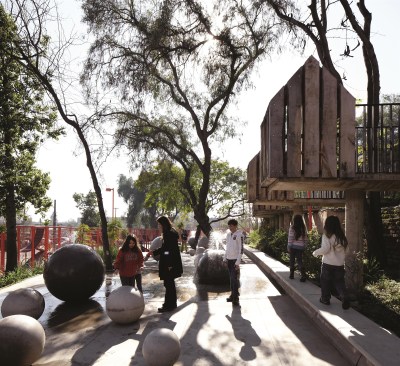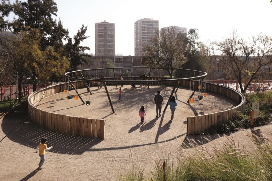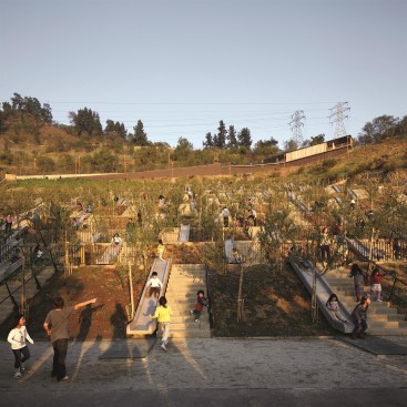 The project consists of over 1,800 m2 children’s playground, including tree houses, swings with harness, a forest of water spheres, and a toboggan cascade with more than 60 toboggans arranged on the hillside. The proposal uses the difficulties of the terrain to solve a classic dilemma of children’s games: make them either safe or entertaining? The hillside slope allowed us to reach enough height to make them fun, without being a threat to children’s safety. Furthermore, the perimeter fence of the park is a play area of 310m.