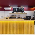 As the central point of the project, a service bar made of natural pine wood is located. Playing with indirect led light and its texture, it stand out in the space. This element role as a preparation bar, display and point of sale. In the rest of the space, living room areas, work areas, individual tables and for diners are allocated.