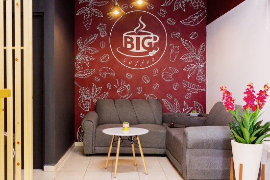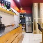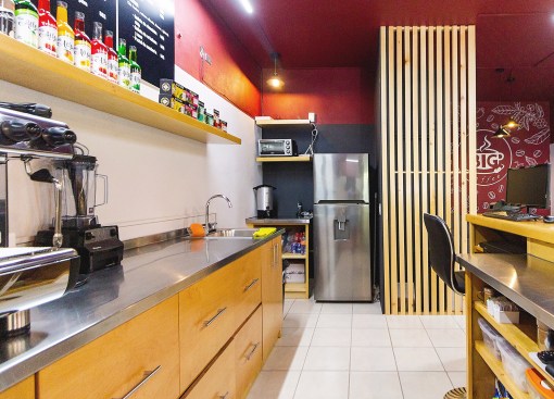 Although a hand pinted mural with the corporative brand enhance the most hidden part of the space.