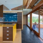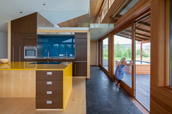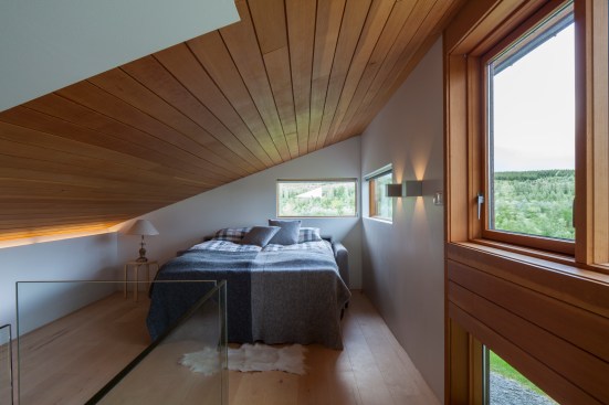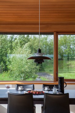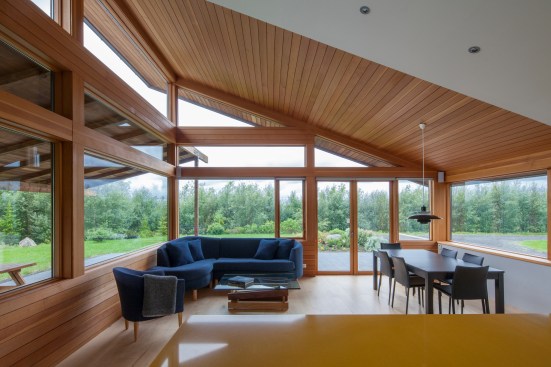 The home is open and glass is used to make the nature fill into the house. The summers are filled with endless sun while the winters glow with the Northern Lights and the snow is so bright it lights up the endless darkness.