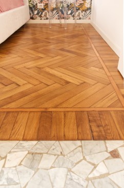 The project re-evaluates a two-room apartment in the heart of Milan, in a 1960s palace. The objective of the renovation is to make the apartment as large and bright as possible. The constructive memory of the existing is not entirely lost, but enhanced: the Palladian marble and the Italian herringbone parquet are maintained and smoothed; with small punctual interventions the contribution of light to the rooms is enhanced.