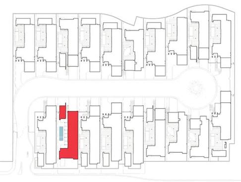 Built on the remains of the old Biltmore Hotel, the project uses a zero-lot-line strategy to get the most out of its 3.3-acre parcel. Each of the 19 houses is sited on one side of the lot to capture outdoor living spaces up to the adjacent house. “This was an attempt to remake the traditional Palm Springs patio home,” says Dion McCarthy, AIA. “It’s all about the sun and outdoors here.” Circulation is maintained along the lot-line wall to create privacy for each house.