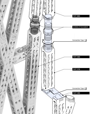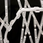 Approached by Airbus to design an interior partition for the A320 airplane, The Living balanced fixed parameters of use and physical size with a series of performance goals that included minimizing weight and maximizing the ability to withstand G-forces while supporting an unbalanced load during a crash landing. Merging biology and architecture, The Living mimicked the biological growth patterns of slime mold—a series of efficient linear structures that reinforce the whole—to optimize a new structural system for the panel. Why a biological precedent? For self-organization, which The Living’s long-time collaborator biologist Ali Brivanlou of Rockefeller University describes as “the common denominator between the different topics of biology that could have a direct influence on the way that humans design structures.” In slime mold, as with all organic cells, “the knowledge of organizing a structure in the most optimum adaptive way is contained in each unit of that structure.” The Living used an algorithm to generate thousands of design options for the structural system, ultimately choosing an optimized final version made from 162 3D-printed parts that is lighter and stronger than the industry’s standard partition.