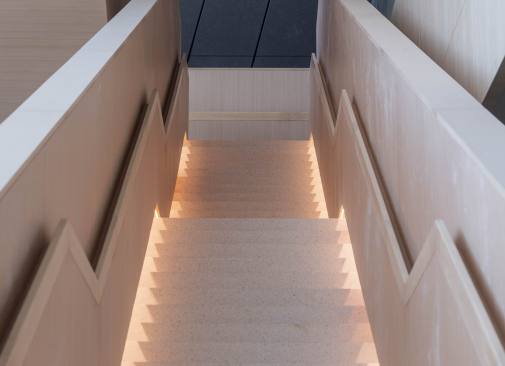 The interior the building incorporates communication and sharing as the design concept with the research units organized around a central atrium. Each typical floor consists of three units of different sizes that that can be combined to yield various configurations. Such flexibility is supported by separate circulation systems for users and materials, along with an efficient HVAC system.