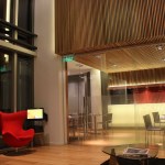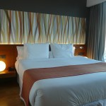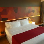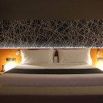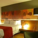 In the rooms conception it was intended to take the maximum advantage to give an individual accent of each room, maintaining a common identity at the same time. Each room by floor has a particular touch given by a colored wall-mural on the bed headboard matching with the bed runner and upholstery details. The wooden millwork is very simple folded “tapes” which compose the desk with bench-low tables in a similar manner to the main lobby concept. The corridors reinforce the idea of the diversity by an asymmetrical composition in finishing and lighting concept.