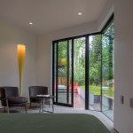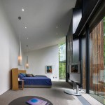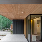 Indeed, the burnt-wood exterior allows the house to almost disappear when viewed from the street, particularly at dusk. “It’s a dance between the positive and the void,” Bruder says. A copper butterfly roof gives the house a birdlike quality (it’s no wonder Bruder’s wife came up with the “Blackbird” moniker).