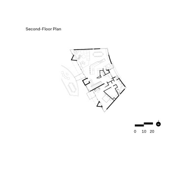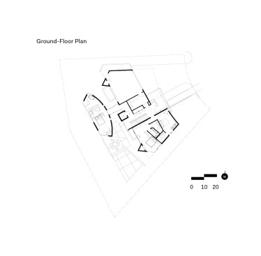 Bruder conceived the house with friend and business partner Frederic Horne, who sensed that Aspen was ready for a modern “urban mountain retreat” in the town’s urban core. They found a 0.21-acre property in a neighborhood of relatively modest single-family homes and apartments. Bruder then faced designing a house that would conform to Aspen’s form-based zoning code, which includes design standards to preserve the town’s established scale and character, and he was game for the challenge. “I’m a devout modernist,” Bruder says, “but I thoroughly believe that cities are made better by form-based zoning.”