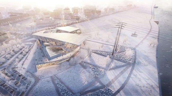 This frozen river became an important reference point for UNStudio’s winning Cable Car Terminal design. The building takes this historical connection as an inspiration for the organisation of programmes, materialisation, spatial quality and curated views of both cities. Much like the ice on the river, the building becomes an engine for creating social connections between two cultures and a beacon for a joint prosperous future between the two nations.