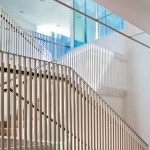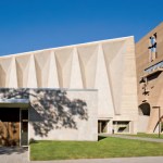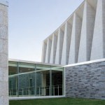 The original Abbey Church complex by Marcel Breuer (1961) was modified to include a new Blessed Sacrament Chapel, a two-level lobby addition (9,200-square-foot) and the renovation of the existing Chapter House. The chapel space is focused on a modern re-interpretation of the 14th century reredos wall (an ornamental panel) that holds the tabernacle. Designed to shield the view of an existing window, the wall diffuses natural light into the space. Platinum leaf is used on the ceiling to distribute light and echo Breuer’s discreet use of precious materials in the Abbey Church. A new stair uses lattice-like steel railings to bring light to the lower level of the addition.