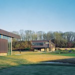 With its compact exterior volume and open interiors, the Blessings Golf Club departs from the traditional typology of small, often dark rooms in sprawling structures. Blackwell and Boswell's palette of natural, modern, and midcentury-inspired finishes, furnishings, and building materials helps impart a sense of comfort and quiet elegance.